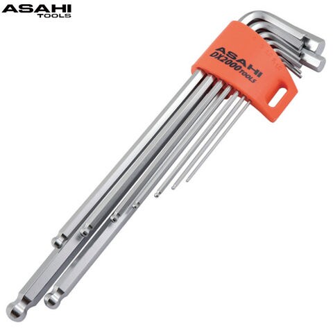 メッキ ロングボールポイント 六角棒レンチ9pcs 1.5-10mm AQS0910 旭金属工業 DX2000工具 DIY レンチ ハンドツール 修理 作業用工具