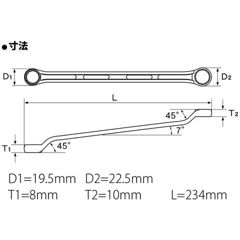 めがねレンチ ライツールオフセット 両口めがねレンチ 13×15 LOF1315 旭金属工業 45°×7°工具 DIY レンチ ハンドツール 修理 作業用工具スペック
