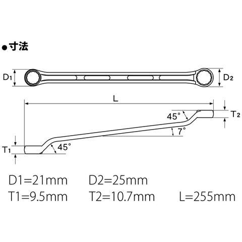 めがねレンチ ライツールオフセット 両口めがねレンチ 14×17 LOF1417 旭金属工業 45°×7°工具 DIY レンチ ハンドツール 修理 作業用工具スペック