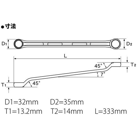 めがねレンチ ライツールオフセット 両口めがねレンチ 22×24 LOF2224 旭金属工業 45°×7°工具 DIY レンチ ハンドツール 修理 作業用工具スペック