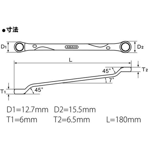 レボウェーブ OL 45°×7°オフセット 両口めがねレンチ 8x10mm OL0810 旭金属工業 工具 DIY レンチ ハンドツール 修理 作業用工具スペック