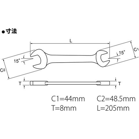 - 口の傾き角度が約15°付いており裏表を使用する事で狭い場所での作業を可能とします。