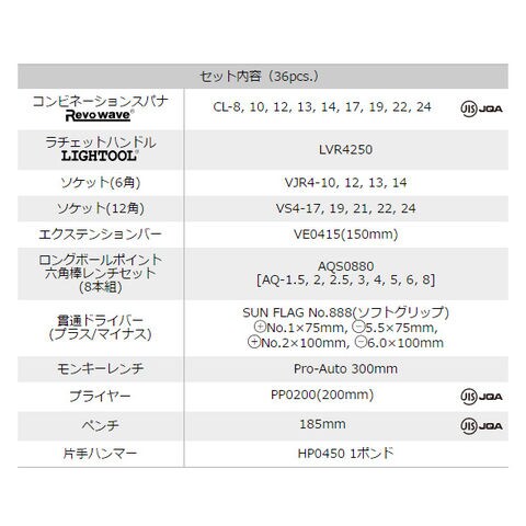 ツールセット 入組数36点 TS4100 旭金属工業 工具 DIY ハンドツール 修理 作業用工具スペック