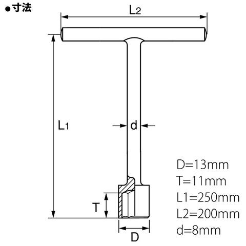 ロングT形 ボックスレンチ 8mm TW0008 旭金属工業 工具 DIY レンチ ハンドツール 修理 作業用工具スペック
