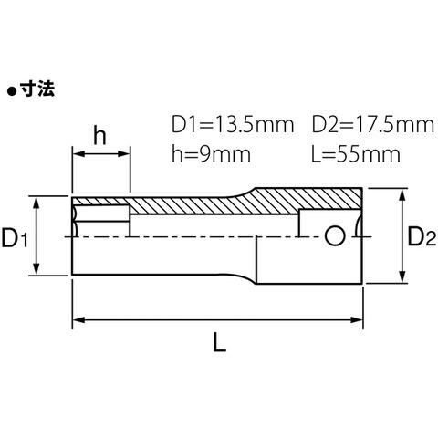 - 通常のソケットより全長長いので、奥深い箇所でも使用できます。