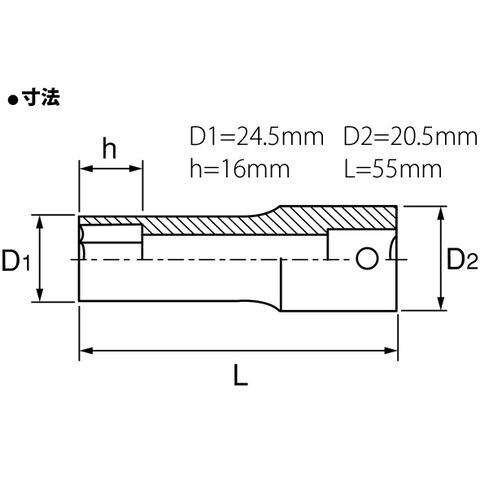 - 通常のソケットより全長長いので、奥深い箇所でも使用できます。