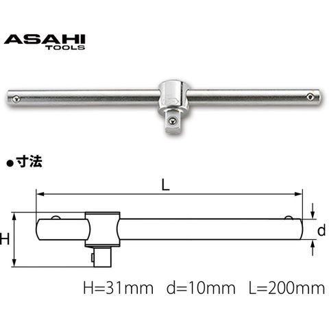 VT3 T形 スライドハンドル [3/8"][9.5 ]x200mm VT0320 旭金属工業 工具 DIY ハンドツール 修理 作業用工具スペック