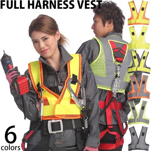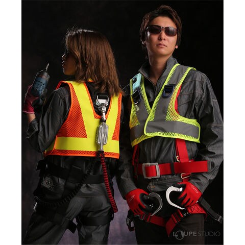 6色展開で色による識別にも役立ちます。フルハーネス固定用マジックテープでフルハーネスと同時にベストも着脱可能。