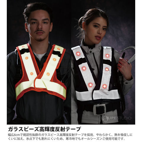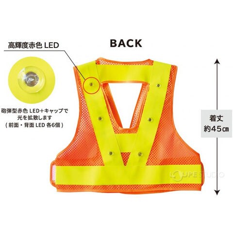 | 素材 | 本体/ベンチレーションメッシュ、LED/砲弾型高輝度赤色LED、反射部/高輝度反射テープ(ガラスビーズタイプ) |