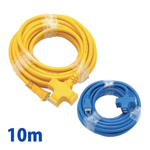 十字マルチ延長コード 10m 3個口 電動工具 工場 工事 現場 作業 職人 十字マルチ延長コード 15A-1500W 黄 青 耐寒性 冬 しなやか 柔らかい