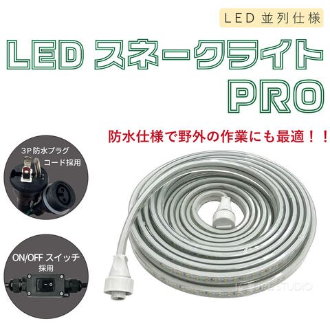 LEDスネークライトPRO[片面発光タイプ]10Mセット LEDライト ロープライト 照明 電気 明かり 昼光色 工事現場 野外 イベント 夜間 防水 間接照明