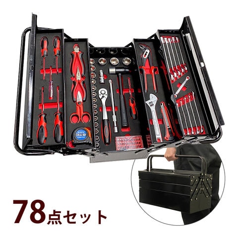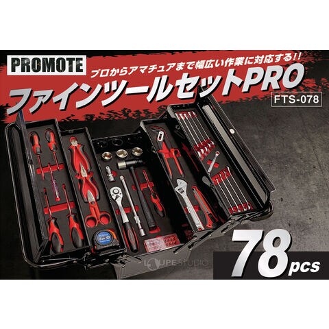 工具セット 78点 家庭用 DIY 自動車 整備 日曜大工 プライヤー レンチ ハンマードライバー ニッパー ラジオペンチ ハサミ 工具箱 ツールボックス PROMOTE プロモート ファインツールセットPRO ツールセット