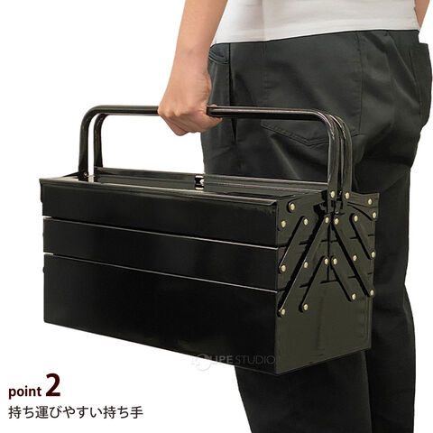 頑丈なスチール製の工具箱は、収納物を一覧できる両開きタイプの工具セット。