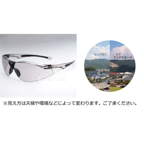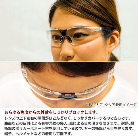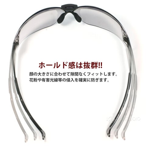 鼻部にラバーのパッドか付いているスポーティータイプの保護メガネです。頭をしっかりホールドし、激しい動きでもズレません。レンズにふちがないため視野が広く、視界変化のほとんどないメガネです。