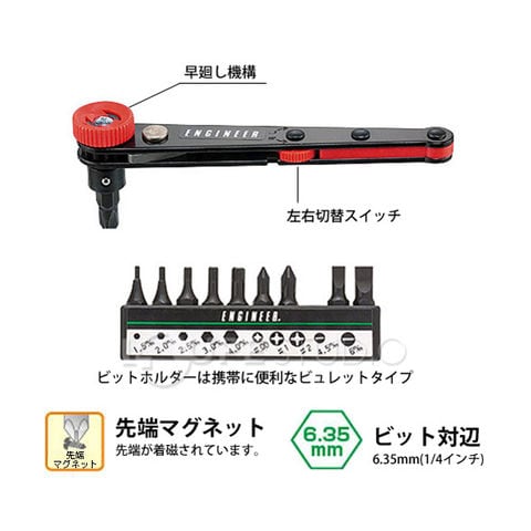 | ビットサイズ/10本(mm) | +♯00、♯1、♯2、-4.5、6、六角1.5、六角2、六角2.5、六角3、六角4 |