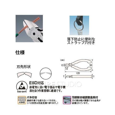マイクロニッパー ESD120mm エンジニア 静電気対策 グリップ 強力 精密 NS-04 電工用工具 おすすめ 道具スペック
