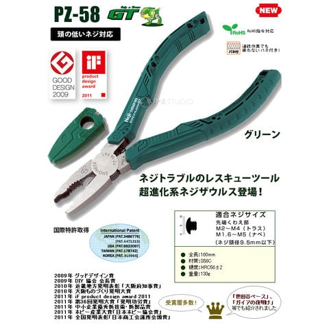 ネジザウルスGT PZ-58 ウルスマスク キャップ プライヤー 専用キャップ付き エンジニア ペンチ ネジ 外せない ENGINEER スペック