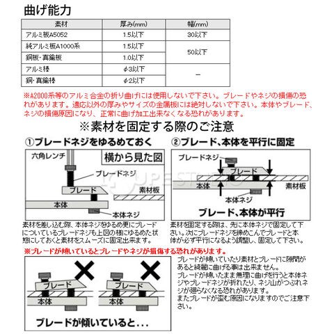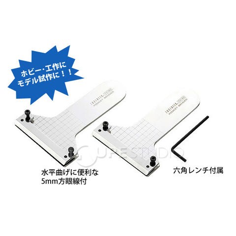 - 2つのハンディタイプバイスに挟んで手で曲げるだけの簡単折り曲げ工具です。
