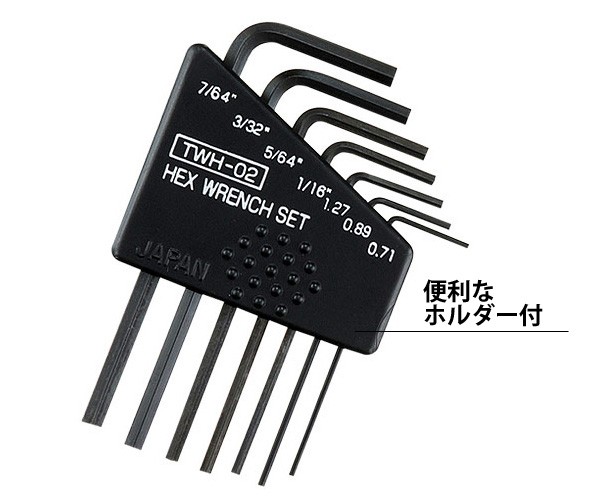 | セット内容(対辺インチサイズ) | 0.71mm、0.89mm、1.27mm、1/16”、5/64”、3/32”、7/64” |