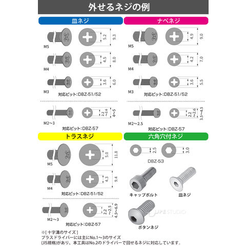 - 独自の先端形状により、潰れたネジを外せます。
