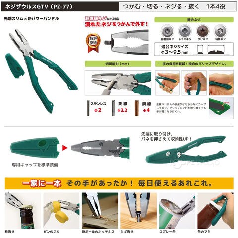 PZ-77/つかむ、切る、ネジる、抜く、1本4役の多機能ペンチ。