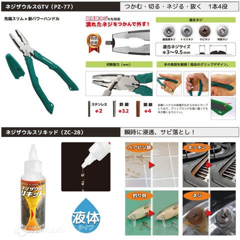 PZ-77/つかむ、切る、ネジる、抜く、1本4役の多機能ペンチ。