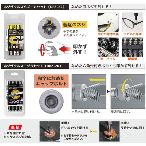 DBZ-20、DBZ-22/独自の先端形状により、潰れたプラスネジ、六角穴付きボルトを叩かず外せます。