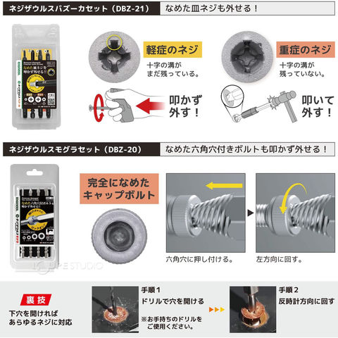DBZ-20、DBZ-21/独自の先端形状により、潰れたプラスネジ、六角穴付きボルトを叩かず外せます。