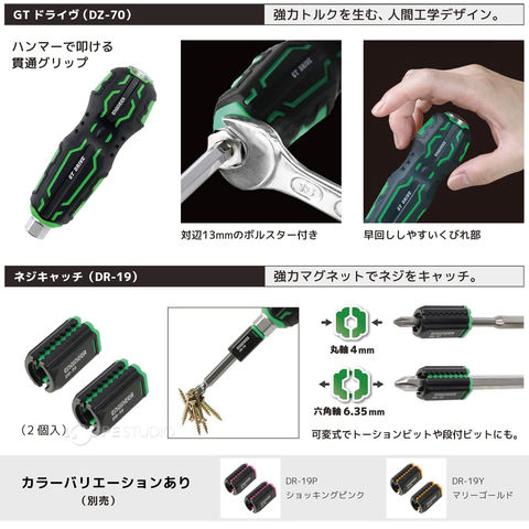DR-19/強力マグネットでネジを落とさず確実に保持できます。