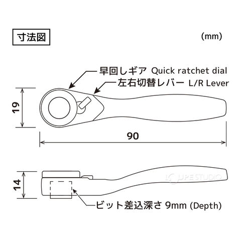 エンジニア ラチェットレンチMini DR-37 ラチェットハンドル ミニ 工具 おすすめ 自動車整備 機械設備 ENGINEERスペック