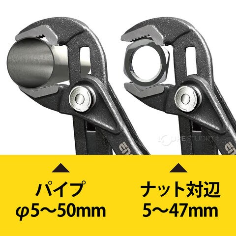 | つかみ幅 | パイプ/φ5~50、ナット/対辺5~47mm |
