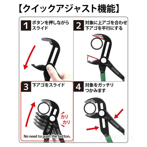 エンジニア ネジザウルス WP-3 PZ-82 ウォーターポンププライヤー クイックアジャスト機能付き ネジ外し 水回り 水周り 工具 ENGINEER