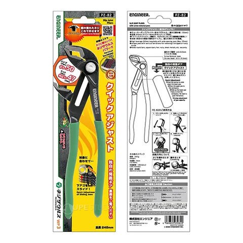 エンジニア ネジザウルス WP-3 PZ-82 ウォーターポンププライヤー クイックアジャスト機能付き ネジ外し 水回り 水周り 工具 ENGINEERスペック