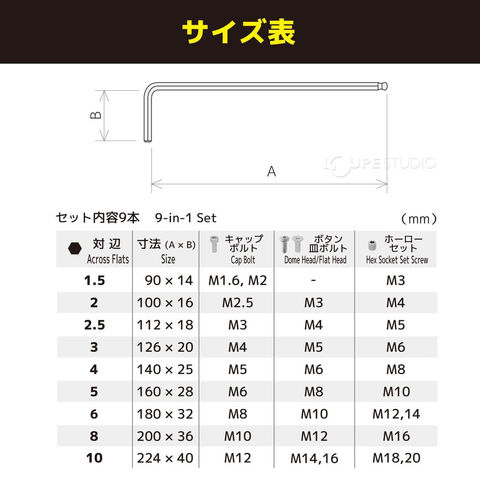 | 対辺 | 1.5、2、2.5、3、4、5、6、8、10mm |