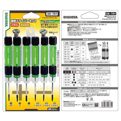 エンジニア 精密ドライバーセット 6本 プラスドライバー マイナスドライバー DK-701 工具極太グリップ ENGINEERスペック