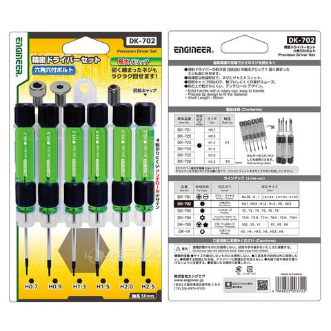 エンジニア 精密ドライバーセット 6本 六角 DK-702 極太グリップ 工具 六角穴付ボルト ネジ外し ENGINEERスペック