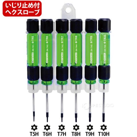エンジニア 精密ドライバーセット 6本 ヘクスローブ イジリ止め付き DK-704 極太グリップ 工具 ネジ外し 取り付け 取り外し ENGINEER
