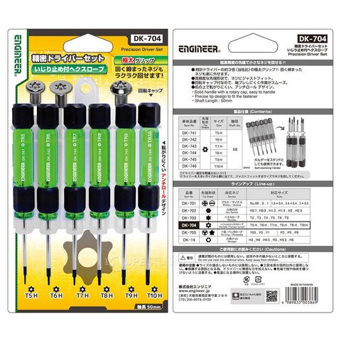 エンジニア 精密ドライバーセット 6本 ヘクスローブ イジリ止め付き DK-704 極太グリップ 工具 ネジ外し 取り付け 取り外し ENGINEERスペック