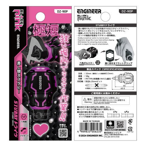 エンジニア STUBBYドライヴ DZ-90P スタビーグリップ ドライバー 極短 工具 スタビドライバー おすすめ 六角軸スペック