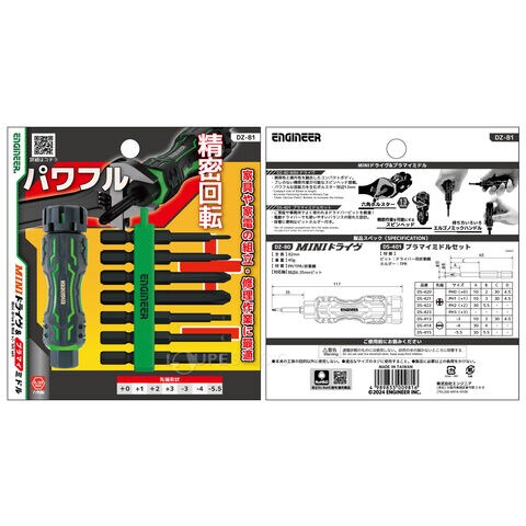 エンジニア MINIドライヴ&プラマイミドル DZ-81 ドライバー プラス マイナス ビット7本組 プラスドライバー マイナスドライバー 工具 家庭用 プロ用スペック