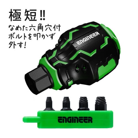 - 独自の先端形状により、潰れた六角穴付ボルトを叩かず外せます。