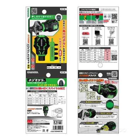 エンジニア STUBBYドライヴ&ネジモグラ極短 4本組 DZ-96 スタビーグリップ ドライバー 極短 工具 スタビドライバー おすすめ 六角軸スペック