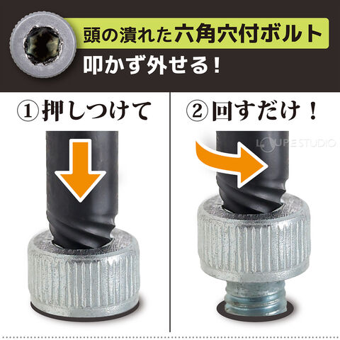 - なめた六角穴付ボルトを救出できるモバイルツールセット。