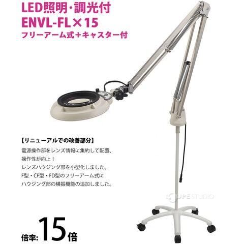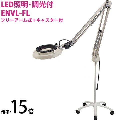 LED照明拡大鏡 フリーアーム式+キャスター付 明るさ調節機能付 ENVLシリーズ ENVL-FL型 15倍 ENVL-FLX15 オーツカ光学 拡大鏡 ルーペ led ライト付き 手芸 読書 作業用 業務用 検品
