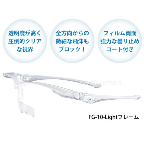 保護シールド 透明 クリア 保護メガネ 保護めがね フレーム + ポリカ Lフィルム 3枚付き FG-10-Light 保護眼鏡 保護ゴーグル 医療用 感染 飛沫 防止 対策 医療 施設