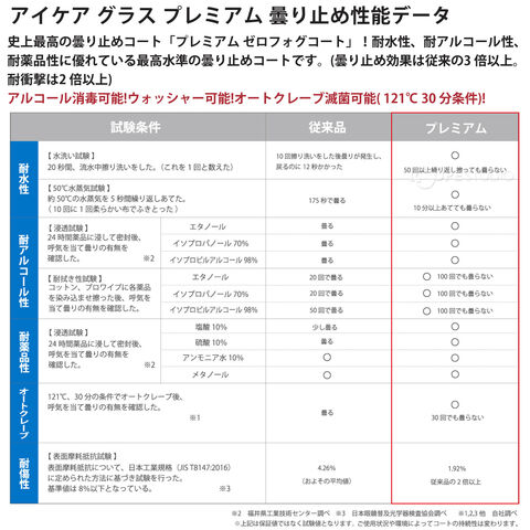 | 仕様 | プレミアム Zero-fog防曇コート付 (アルコール消毒可能) ※オートクレープ不可 |
