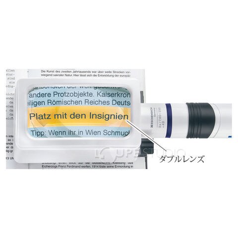 虫眼鏡 置き型 ライトルーペ [system vario plus] ヘッド+LEDライト付グリップのセット 3倍 50×100mm 158064 エッシェンバッハスペック