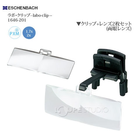 ラボ・クリップ [labo-clip] クリップ + レンズ 2枚セット 1.7・2倍 眼鏡にはさむ クリップタイプ 両眼レンズ 1646201 ヘッドルーペより気軽です エッシェンバッハスペック
