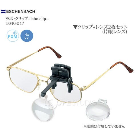 ラボ・クリップ [labo-clip] クリップ + レンズ 2枚セット 4・7倍 眼鏡にはさむ クリップタイプ 片眼レンズ 1646247 ヘッドルーペより気軽です エッシェンバッハスペック