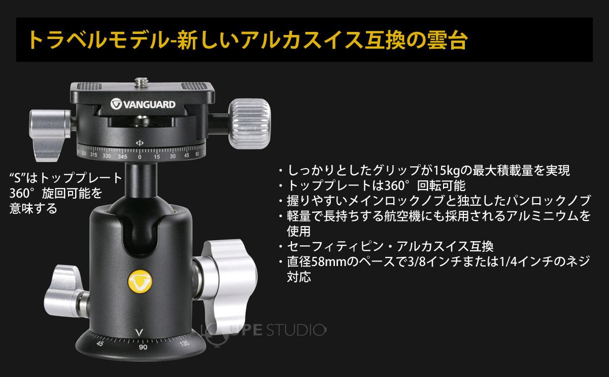 - 1本の脚部を取り外し一脚に可変しつつ、高い剛性を誇る。